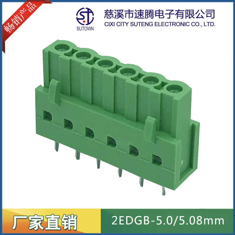 Material and Plating Spacing:5.0/5.08mm Plastic parts;PA66,UL94V-0 Cage:Brass,Tin plating Screw:M3,Steel,Zn Plating Terminal:Phosphor bronze,Nickel plating Electrical performance Rated voltage:300V Rated current:15A Ambient temperature:-40℃~+105℃ MAX Soldering:+250℃,5s Withstanding Voltage:AC2500V/1Min Contact resistance:20mΩ Insulation resistance:5000MΩ/1000V Wire diameter:28-12AWG 2.5mm2 Torque:0.4Nm Strip length:7-8mm