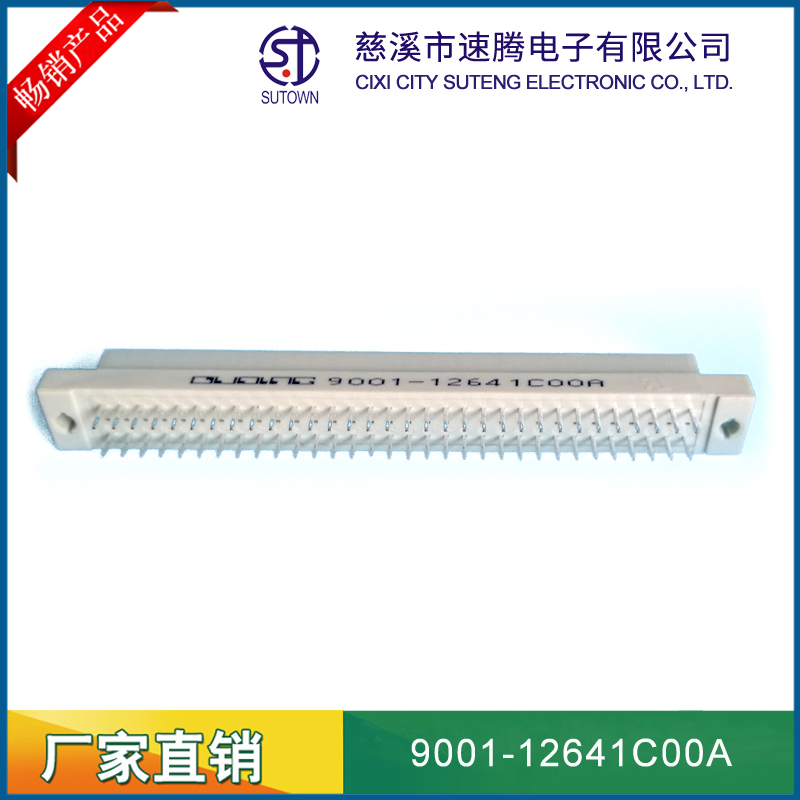 品名:歐式插座連接器型號:9001-12641C00A 規格:64pin屬性:彎針公座 備注:中間排1排間距:2.54間距